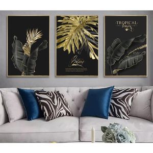2020 Abstract Golden Plant Leaves Picture Wall Poster Modern Style