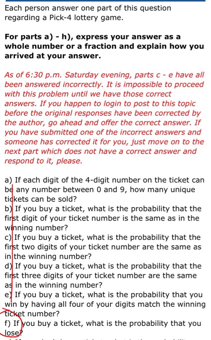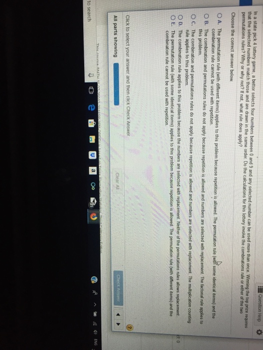 Solved Question Help In A State Pick 4 Lottery Game A