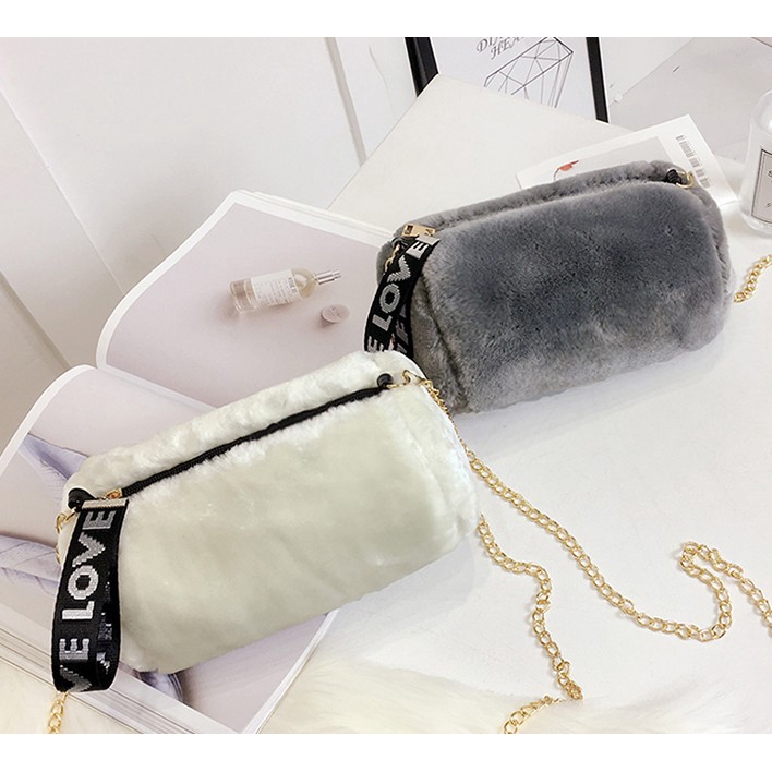 Women S Handbag Bag Korean Fashion Plush Cylinder Bag Chain Clip