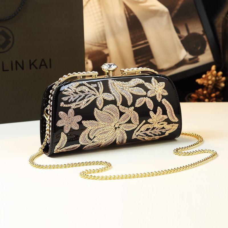 Fashion High Quality Patent Leather Small Clip Bag Embroidery