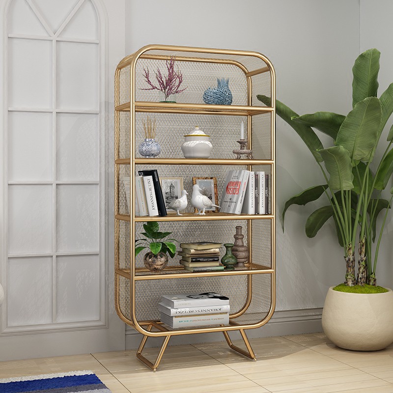 Nordic Wrought Iron Shelf Small Bookcase Golden Storage Rack Floor