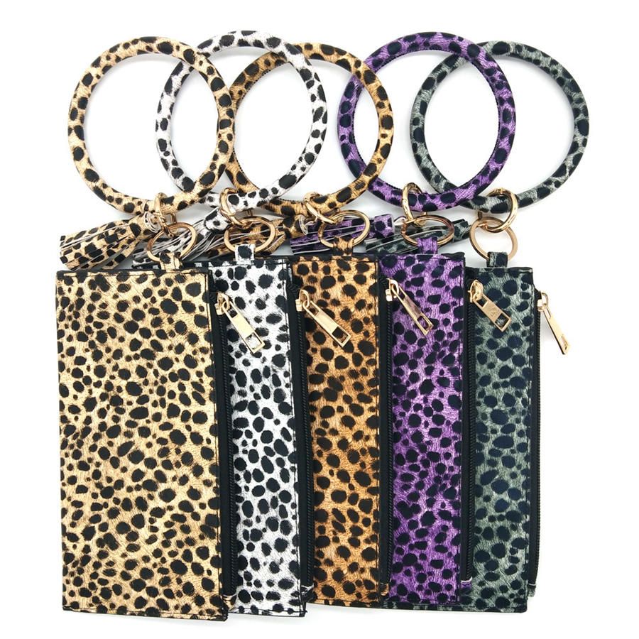 Leopard Bracelet Keychain Purse Pu Leather Keychain Hang Coin