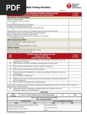 Acls Skills Testing Checklist Cardiopulmonary Resuscitation