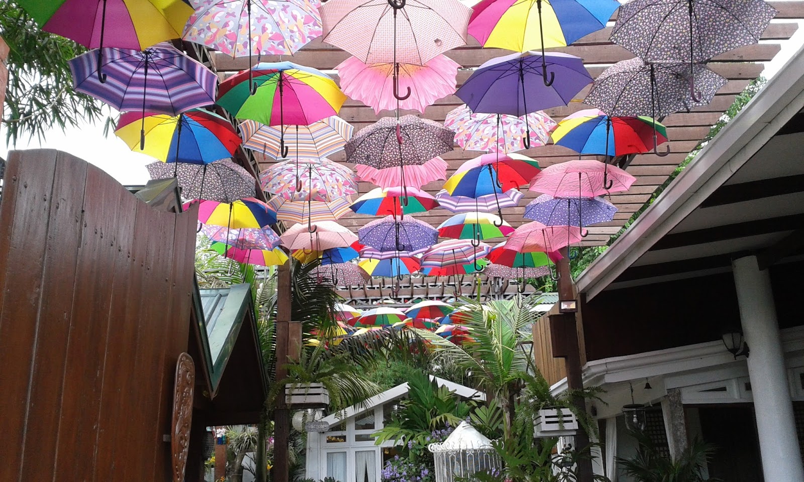 Colorful Umbrellas To Shade The Whole Pathway At Bag Of Beans