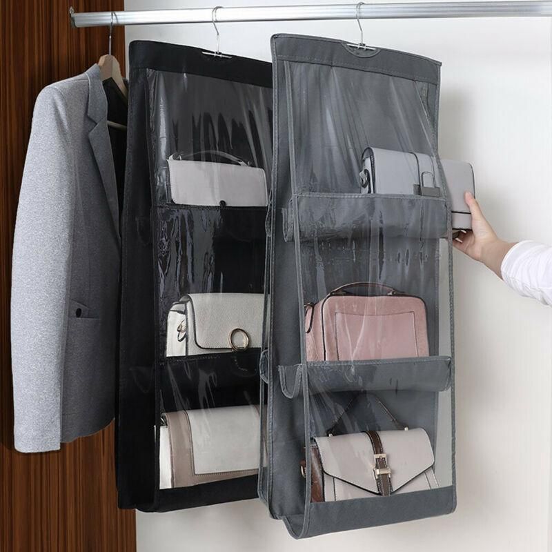 6 Pocket Clear Shelf Bags Purse Handbags Organizer Door Storage