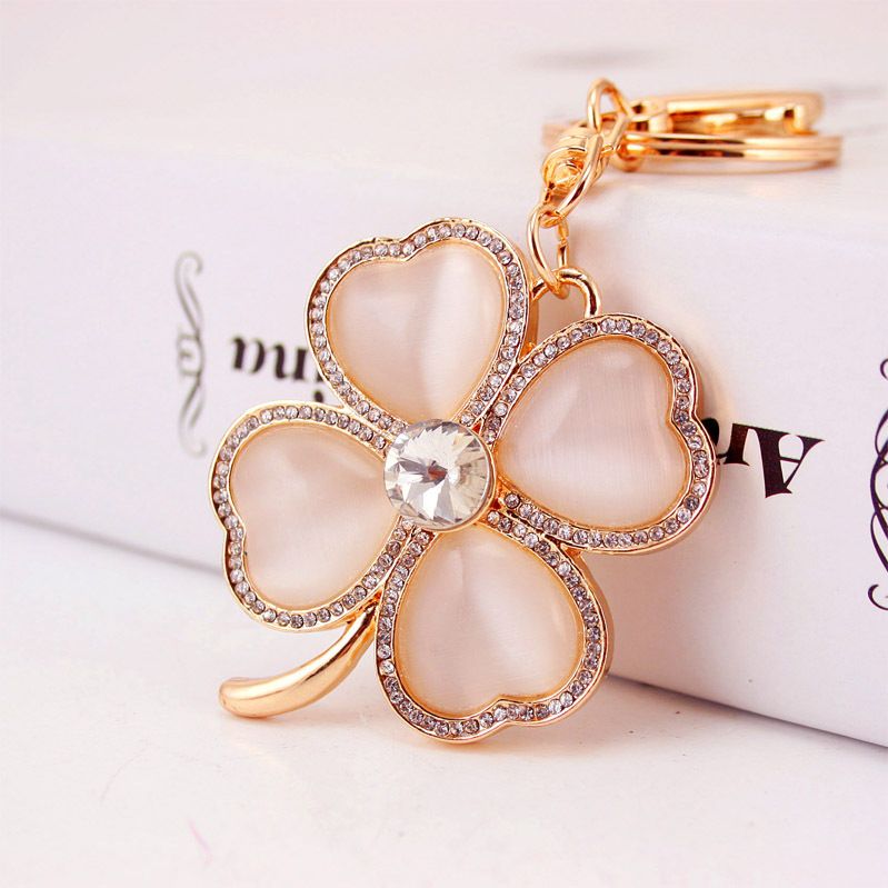 4 Leaf Clover Charm Fashionable Keychain Sparkling Crystal