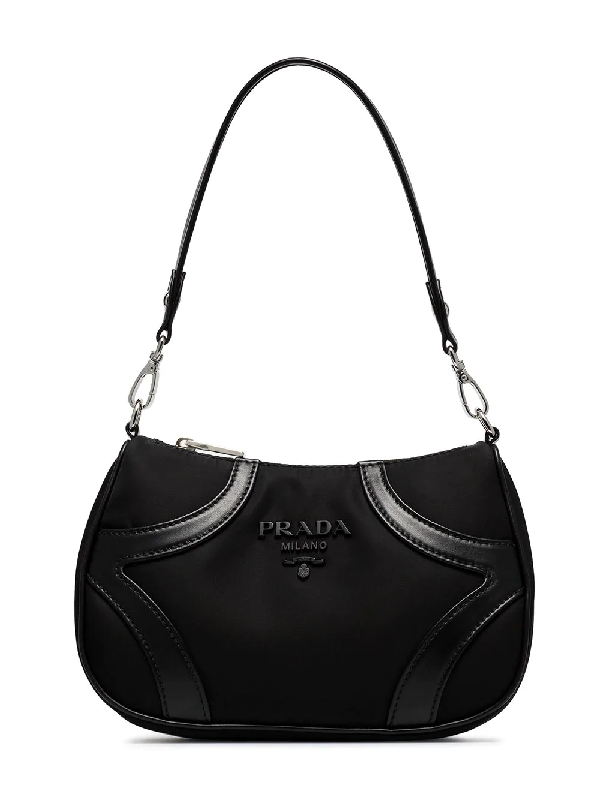 Prada Nylon Leather Baguette Bag In Black Modesens