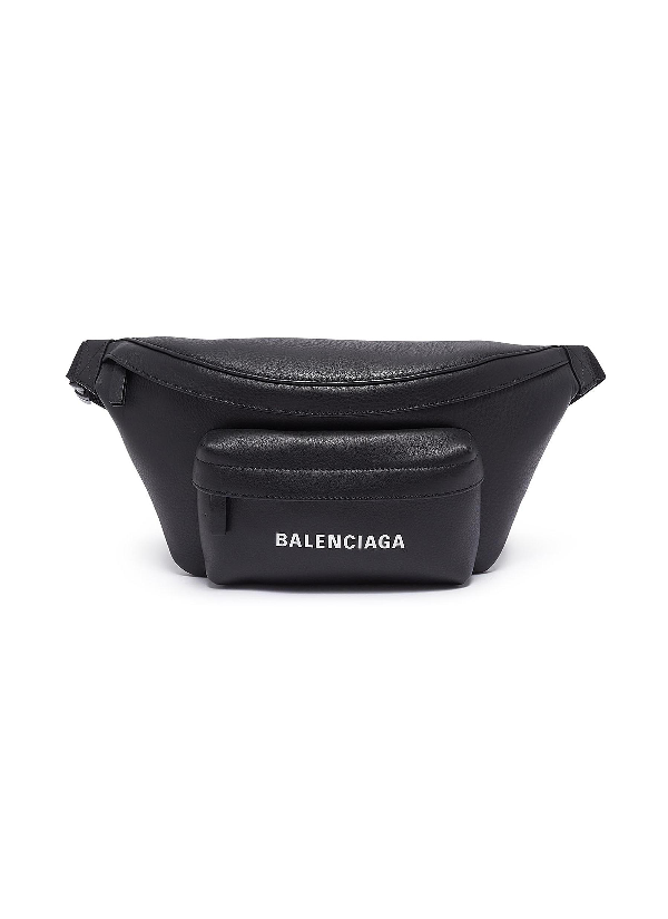 Balenciaga Everyday Logo Print Leather Bum Bag In Black Modesens