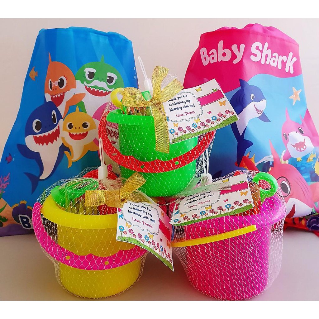 Baby Shark Gift Set Birthday Goodie Bag Drawstring Bag Beach Toy Set Roller Colour Pencil With Sharpener Sand Toy Shopee Singapore