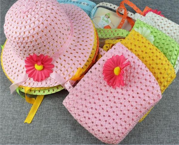 2020 Sweet Baby Girl Kids Straw Flower Sun Hat Cap Child Summer Party Beach Bag Gift Set Y185 From Babyxu123 1 83 Dhgate Com