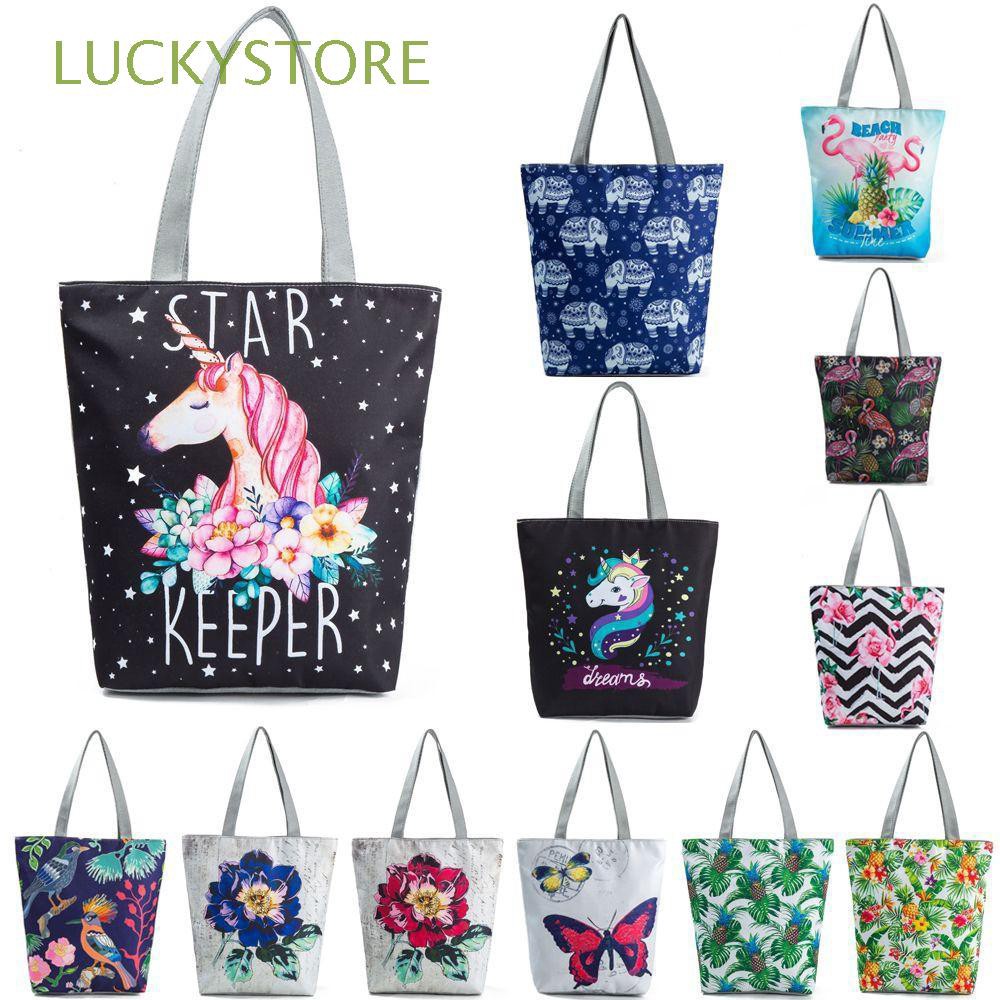 Beach Bag Unicorn Handbag Shoulder Bag Canvas Tote Zipper Shopping