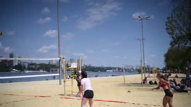 Rostov Don Russia August 2019 Cute Girls Play Beach Volleyball
