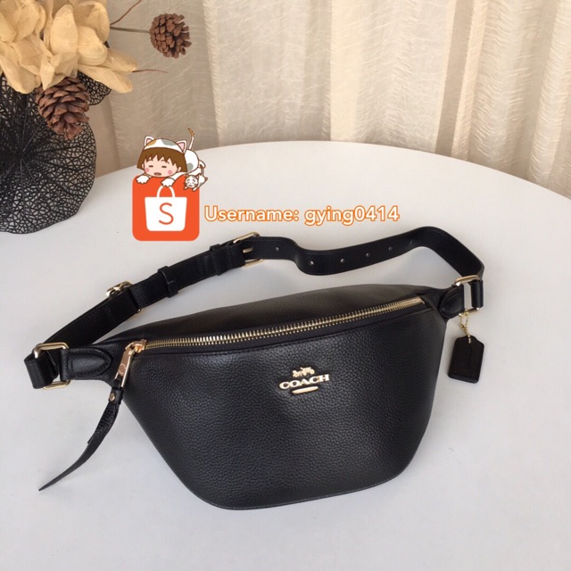 Coach Pebble Leather Black Belt Bag 48738 Women Bag Beg Crossbody