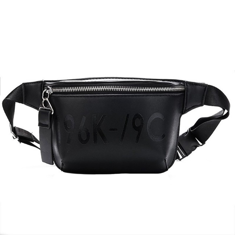 Pu Leather Black Waist Bag Women Fanny Pack Fashion Belt Bag