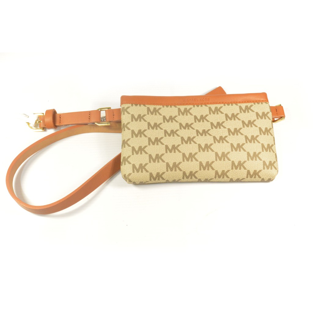 Michael Kors Fanny Pack Belt Bag Mk Signature Logo Vanilla Brown