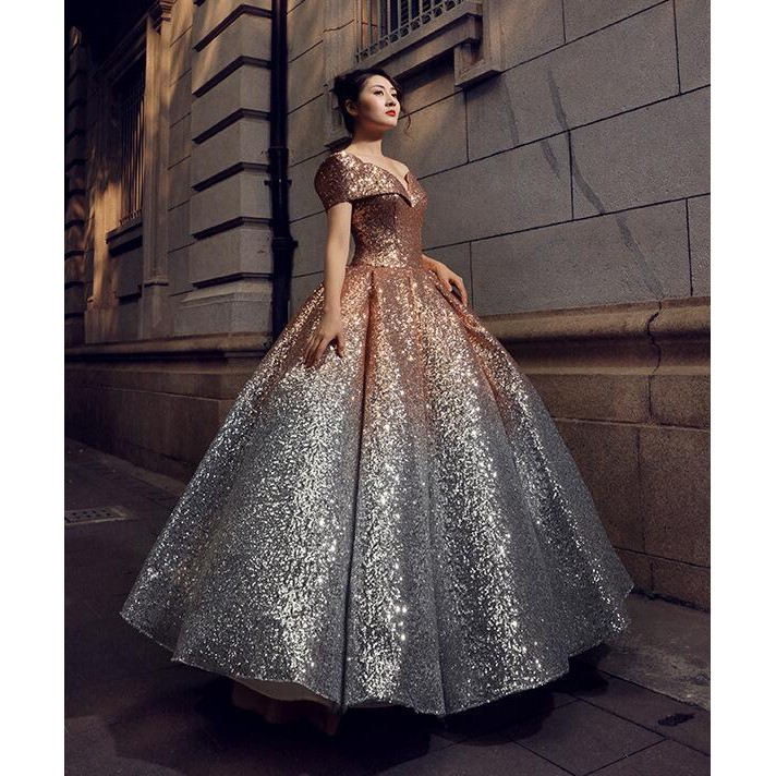 Sparkly Rose Gold Sequined Ball Gown Wedding Dress Princess Off