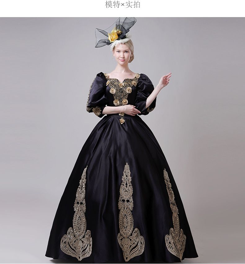100 Real Black Golden Embroidery Beading Bubble Sleeve Royal Court