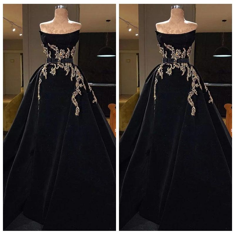 Golden Lace Prom Dresses 2020 Designer Black Skirt Off The