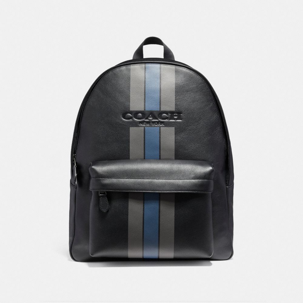 Coach F72237 Charles Backpack In Varsity Leather Black Antique