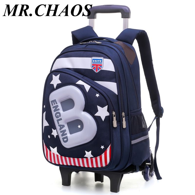 Children School Bag Boys Kids Wheels Removable Trolley School