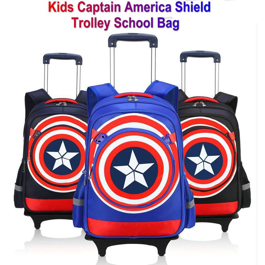 Kids Trolley School Bag Captain America Shield Backpack Boys