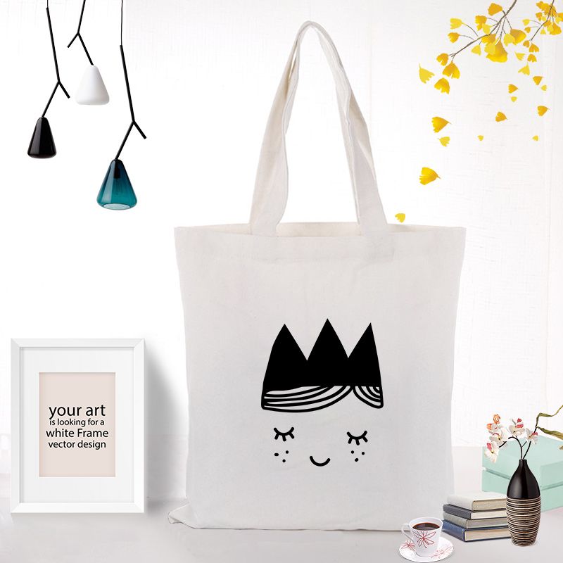 Illustration Shopping Bag Custom Print Logo Text Diy Canvas Tote