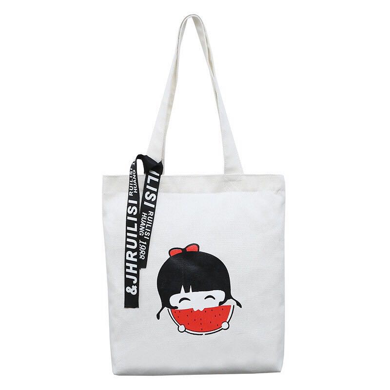 Cartoon Print Canvas Eco Tote Bag Shoulder Portable Storage Bag