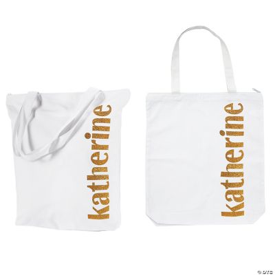 Personalized Extra Large Gold Glitter Canvas Zipper Tote Bag