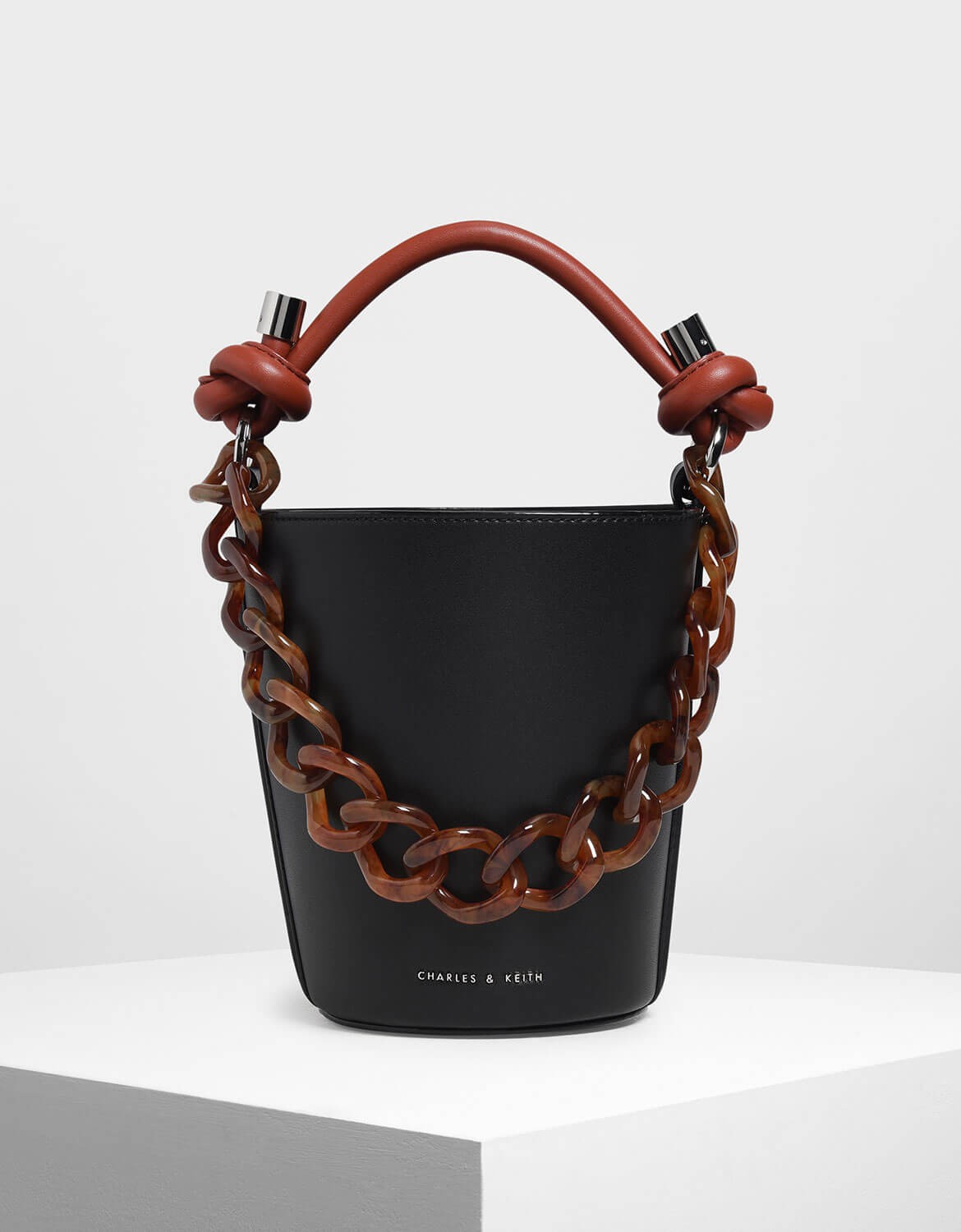 Charles Keith Chunky Chain Handle Bucket Bag Color Dark