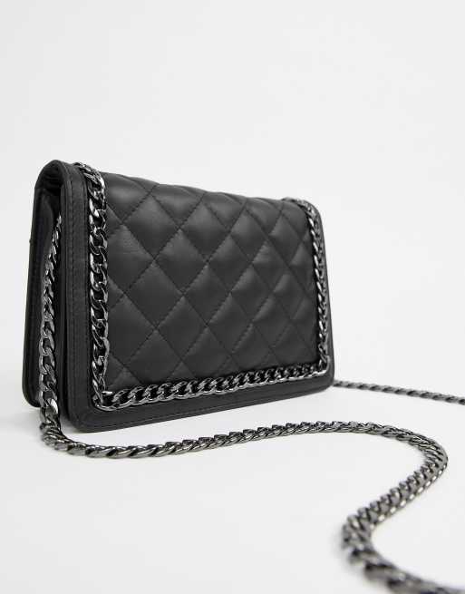 Asos Leather Diamond Quilt Cross Body Bag With Chunky Chain Handle