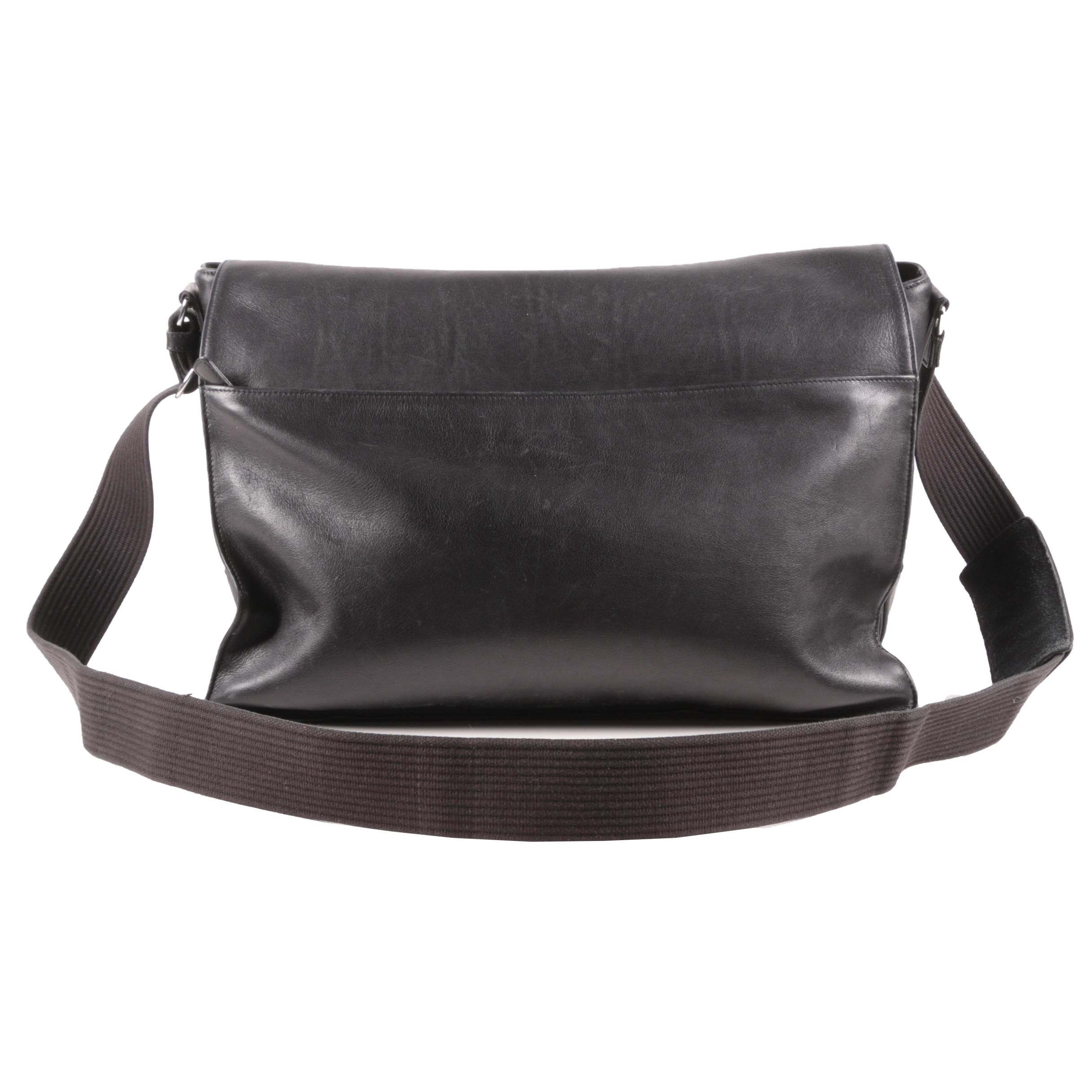 Coach Leatherware Black Leather Front Flap Laptop Messenger Bag Ebth