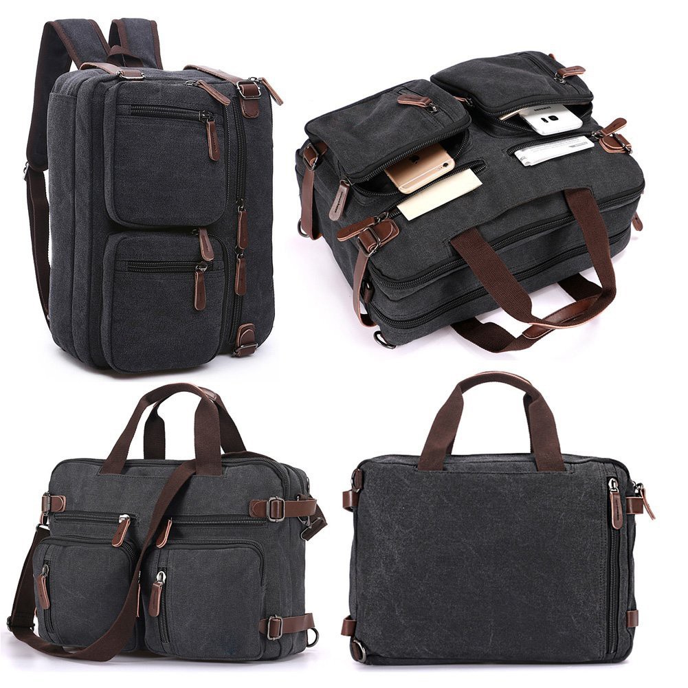 Canvas Leather Convertible Backpack Messenger Bag Satchel Backpack Men
