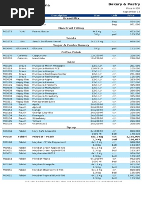 Price List Prambanan Kencana 2013 Okt Salsa Sauce Raisin