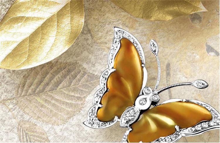Custom 3d Wallpaper Golden Flower Pearl Diamond Butterfly