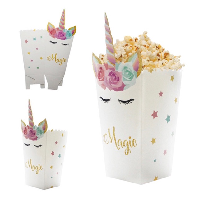 1 Unicorn Popcorn Candy Boxes Paper Bag For Home Birthday Party