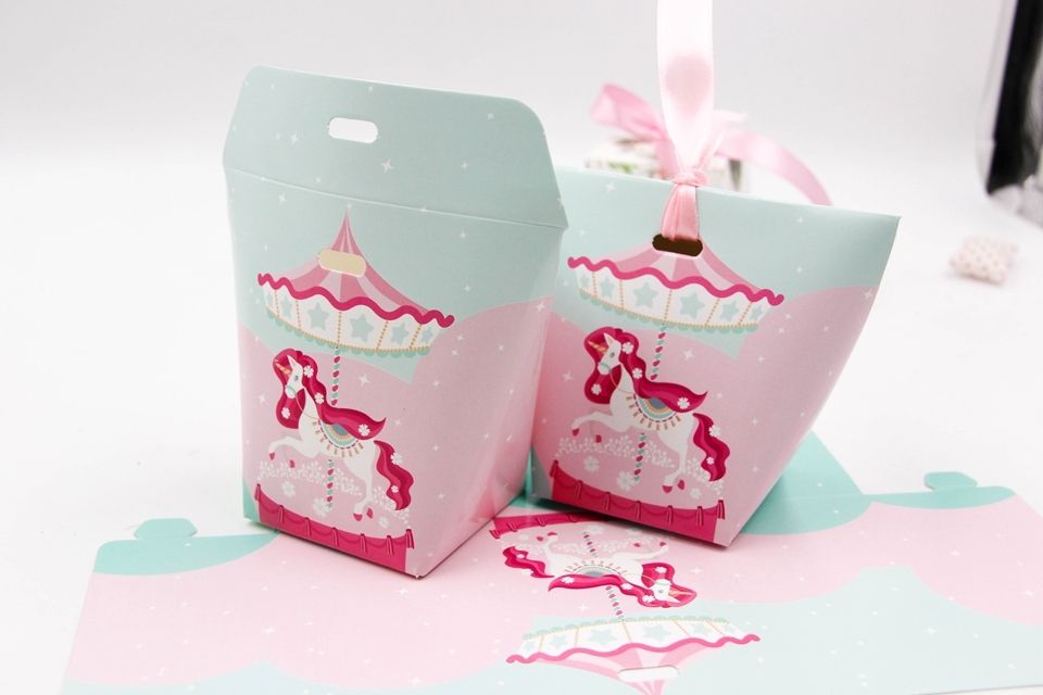 Diy Unicorn Gift Bag Pink Ribbon Candy Box Pattern Kraft Paper