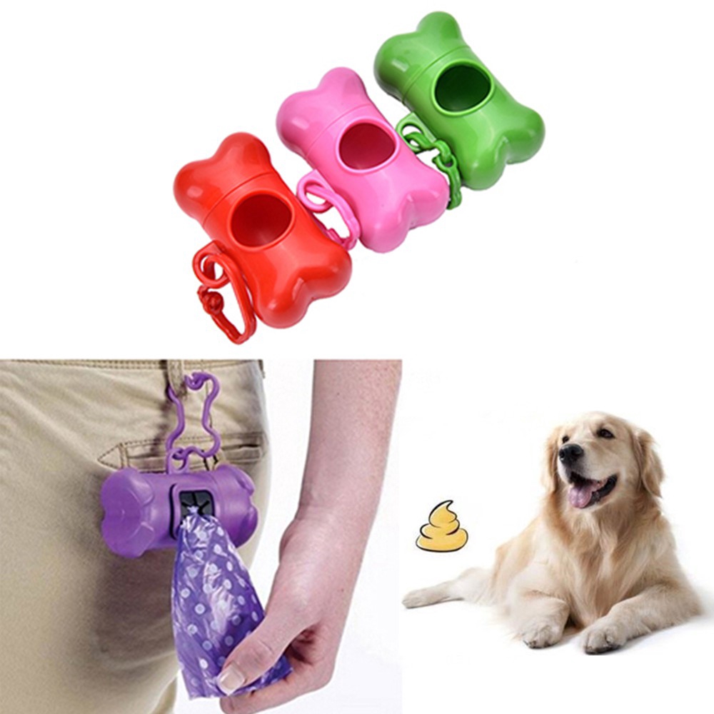 Pet Dog Poop Bag Pill Bone Shape Dispenser Waste Garbage Bags
