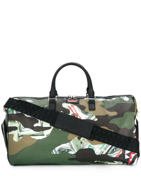 Sprayground Money Camo Shark Faux Leather Duffle Bag In Green
