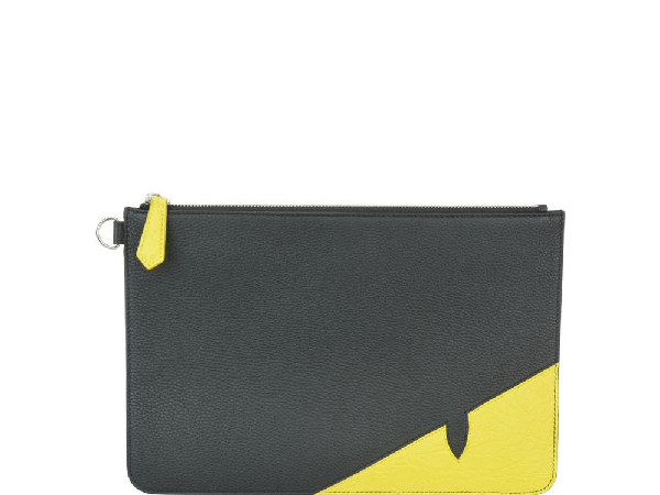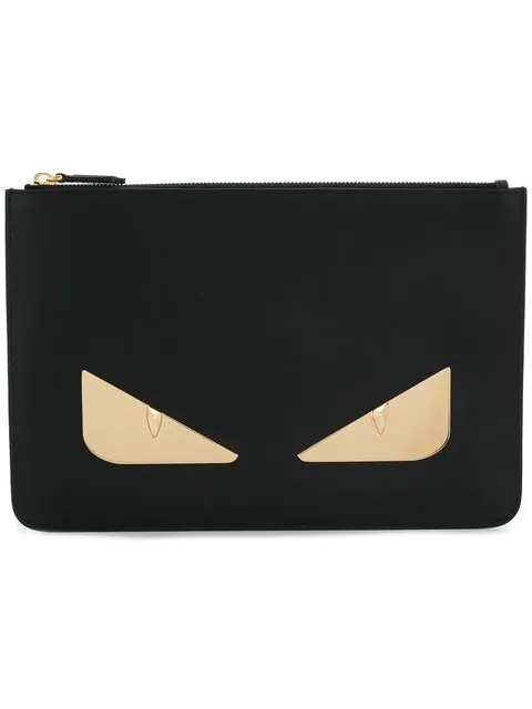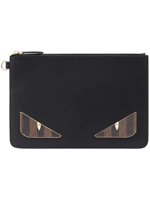 Fendi Black Leather Bag Bugs Eyes Slim Pouch Fendi Tlc