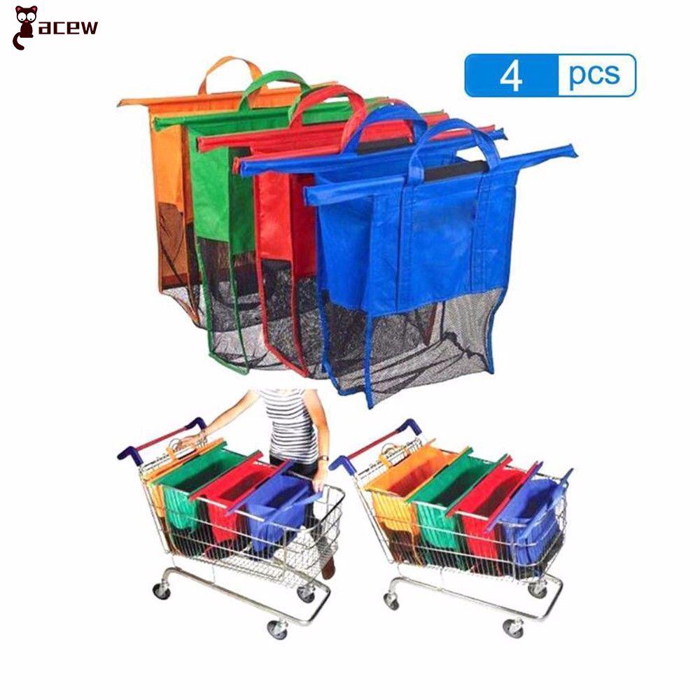 Foldable Reusable Grocery Large Trolley Clip To Cart Supermarket