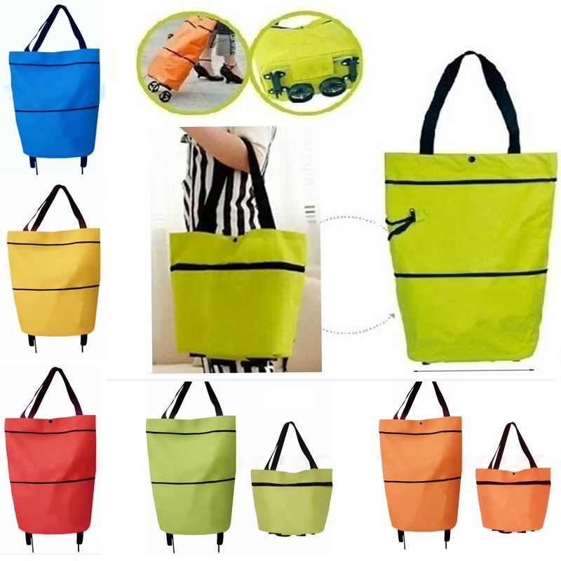 Protable Shopping Trolley Bag With Wheels Foldable Cart Rolling