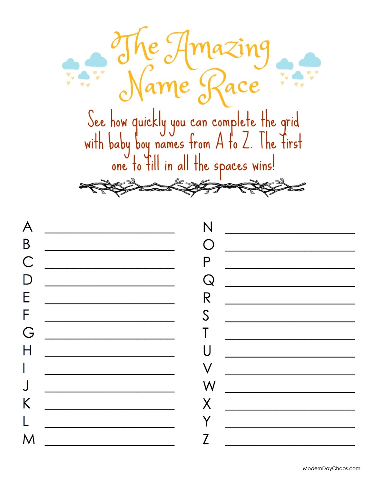 Baby Name Race Game Girl And Boy Versions Baby Shower