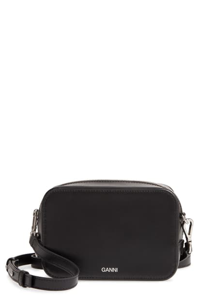 Ganni Textured Leather Camera Crossbody Bag In Black Modesens