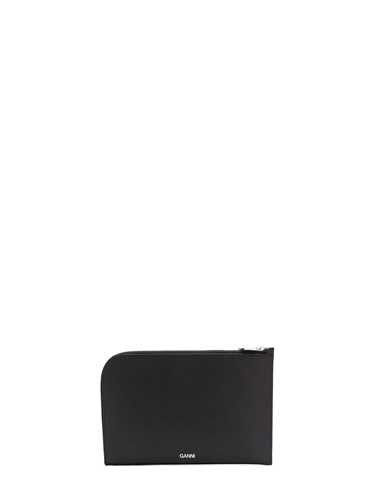 Ganni Textured Leather Wallet In Black Modesens